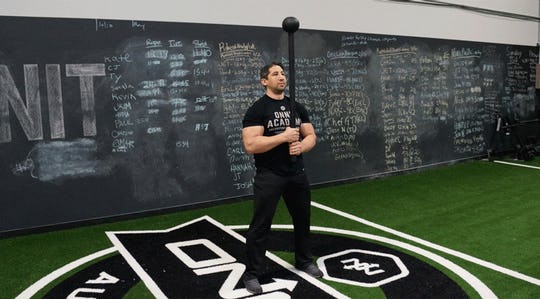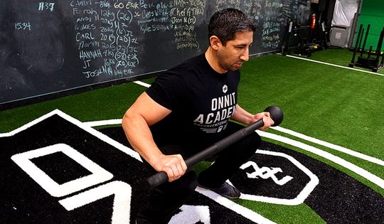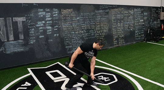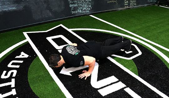 The workout plan for the Onnit Academy Gym this week includes the Steel Mace Paddle Swing, the Low Plank Half Range Push Up and the 360 to Squat.