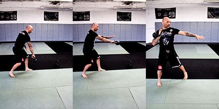 In fact, these variations are about as close to throwing a real punch as you can get with any other training device. You see people using cables and bands to throw punches all the time, but that only addresses the pushing aspect of a punch. These variations utilize the punching, retracting, and the torquing of your hips all in one movement.
