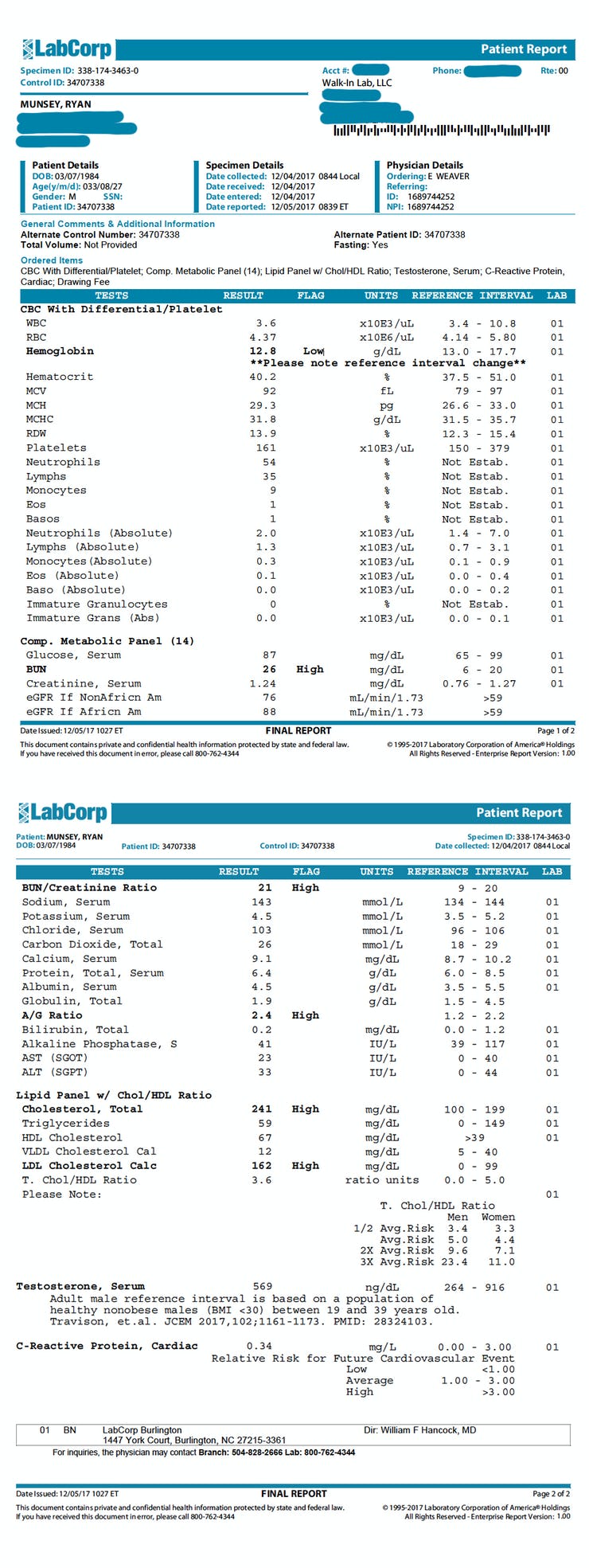 If you don’t believe us, or Munsey, see his official blood lab, direct from his doctor, below.