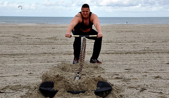 The beach is a perfect place to train, the sand and the sea breeze gives you an extra boost to perform. The anchor pull and stretch!