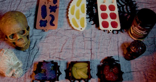 - If using charcoal spider ice cubes, add to individual serving glasses or toss into the caldron. Simply mix one scoop of charcoal with 6 fl. oz. water and add to spider molds. Freeze until set, about 5 hours.