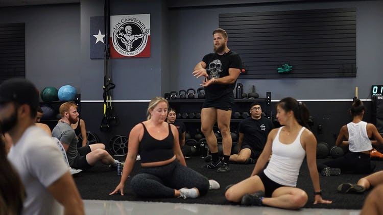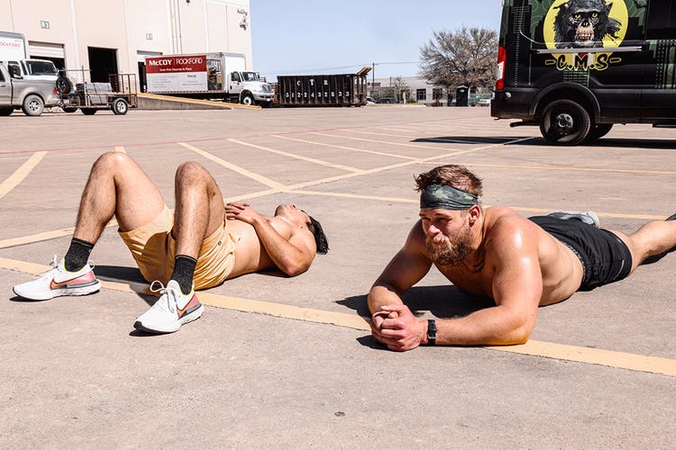 Then, in the fall of 2020, [Former Director of Fitness Programming] Juan Leija posted that Onnit Gym was looking for coaches. I messaged him saying I wanted the job, and he invited me to come do a workout with the other coaches. That was part of my job interview. He put us through the ringer, running with an 80-pound sandbag on our shoulders, among other things, but I was in great shape from all the cardio and mobility training. Juan offered me the job, and I moved to Austin.