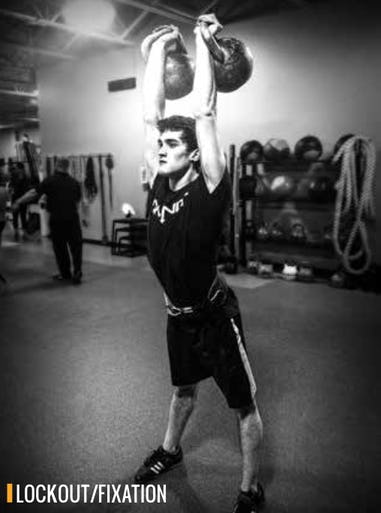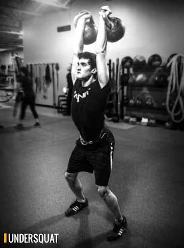There are two primary movement mechanics to accomplish this. First, simply stand up to the overhead posture. Second, the competitor can use a “knee roll” which involves keeping the hips at the level of the Undersquat and only rolling the knees backward to lockout. Thus, there is no true level change which is less work and more efficient. In addition, the anterior pelvic tilt this mechanic creates relaxes the quadriceps. Again, this conserves energy which equals better performance.