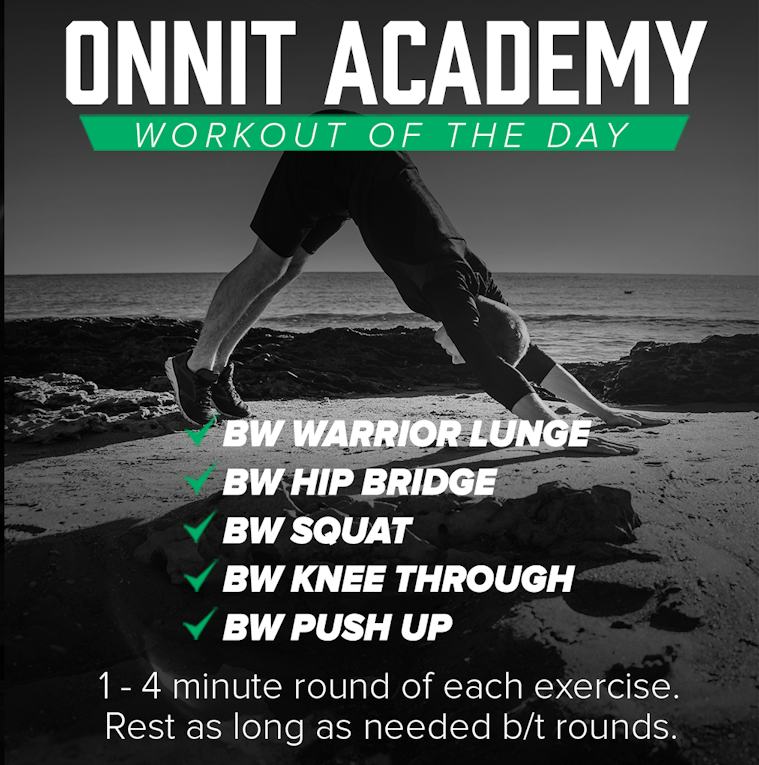 This is the Onnit Academy Workout of the Day. It is a bodyweight workout using no equipment, just one and your mental toughness. It consists of 5 separate exercises done for 4 minutes each. This is #33 of a series of daily workouts, showing you exactly what we are doing at the Onnit Academy Gym in Austin, Texas.