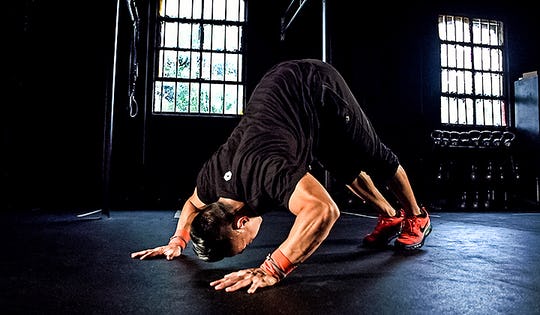 The Pike Push Up is a great upper body builder and beginner variation of the Handstand Push Up. No shame in starting here, as you build up your coordination and overhead pressing strength, you will be on your way to a handstand in no time.