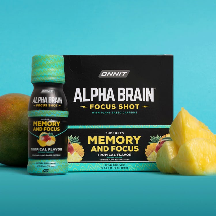 If you don’t like swallowing pills or mixing up powders, Focus Shot is a way to get the focus and flow-state support of the other Alpha BRAIN® products in a convenient ready-to-drink bottle. But it does differ from the original AB capsules and instant drink mix in a few ways. Onnit added a low dose of caffeine (50mg), citicoline (a naturally-occurring brain chemical), and ashwagandha (an adaptogenic herb), a combination that can help with mood and mental stress.†