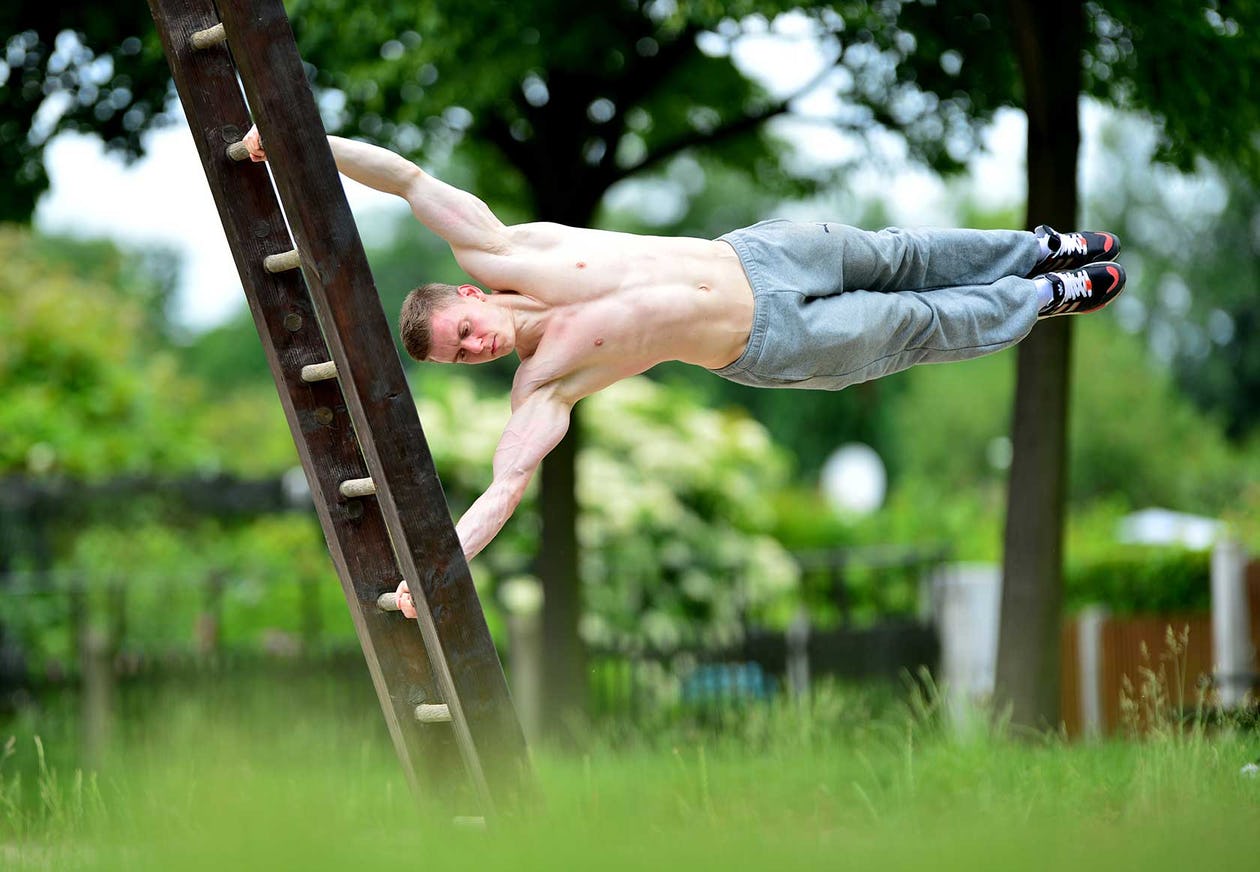 OK, let’s get down to the nuts and bolts of the process. This will be a 3-part series in taking a rank beginner in bodyweight training to create the endurance and strength to pull off the human flag in 3-6 months depending on what kind of shape you are in when you start. Some may take longer, some shorter.