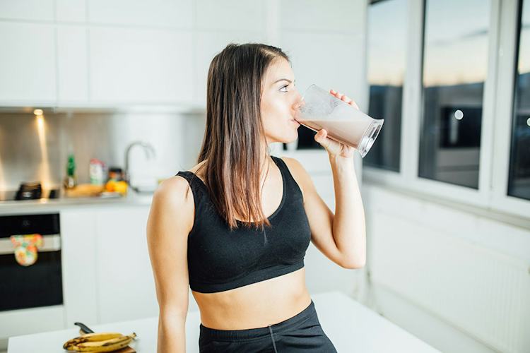 How much protein you need in a day depends on your age, size, goals, and activity level, but the ISSN suggests around one gram per pound of bodyweight daily for individuals who strength train—and even more if you’re dieting, so you can preserve muscle mass while in a calorie deficit that helps you lose fat. So, a 200-pound person who lifts and wants to slim down should start eating at least 200 grams of protein per day. This can be done entirely with whole foods, but it’s often not practical (think: lots of chicken breast, tuna, and eggs), so many opt for protein supplements to help hit their goal number of grams. Whey protein supps offer around 20 grams protein per serving, and can be mixed up and chugged down in minutes.