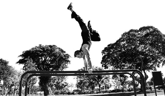 I could have adjusted my training a little, but I decided to go all in and make a huge change. I’d put down the weights and begin bodyweight training. Not just the old school squats and push ups you might think of when someone says “bodyweight training,” but the range of disciplines that include: gymnastics, parkour, hand balancing, breakdancing, and bar calisthenics; the stuff that requires not just strength, but skill. This was far outside of my comfort zone (and according to some of my weary friends, far outside of my age range).